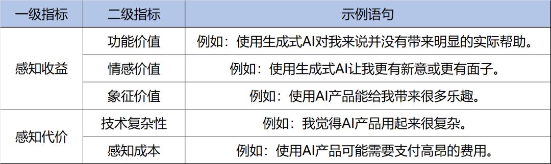 表4. 网民对AI的价值感知测量量表 (每个指标设置3个语句,每句1-5分评分)