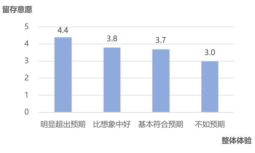 图9. 网民体验与留存意愿(5分制)的关系统计图 (数据来源:T-ask调研-这个春节你用上AI了吗?来测一测) 注:表示“非常失望”的仅有2名网友,在与留存意愿的交叉分析中忽略不计