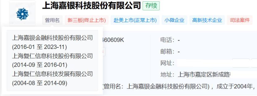 2016年2月29日,复仁科技公司名称变更为“上海嘉银金融科技股份有限公司”,证券简称变更为“嘉银金科”,证券代码依旧为832031。