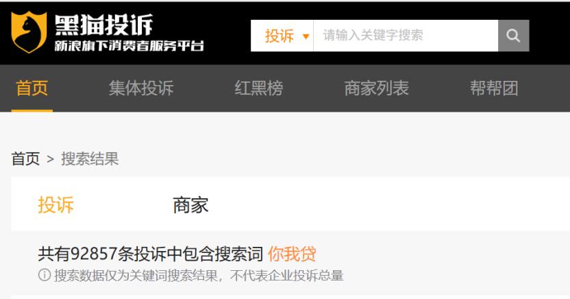 截至2026年3月16日,黑猫投诉平台上共有92857条投诉中包含搜索词“你我贷”,从“被收取高额服务费”到“逾期后遭遇通讯录轰炸”,消费者的控诉直指你我贷的核心痛点。