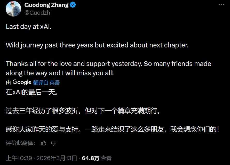 张国栋离开前在X上说“对下一章感到期待”,措辞还算体面,很难说是主动离开还是被清掉的。