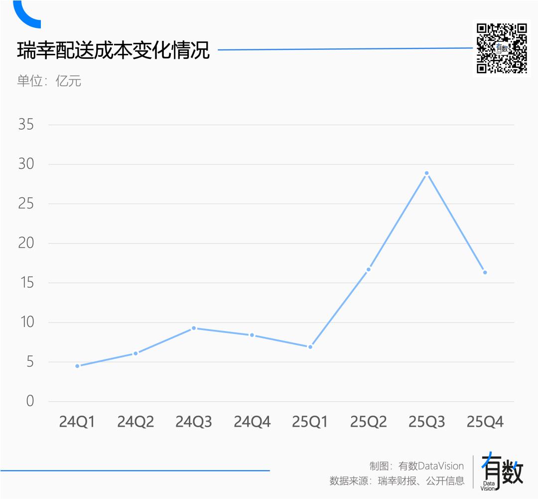 去年二季度,瑞幸配送成本爆炸式增长,单季配送成本16.7亿元,同比增长175%,与外卖大战开打时间吻合。