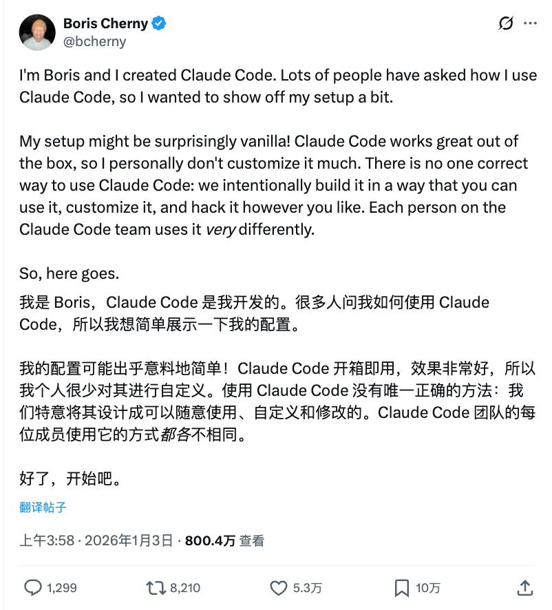 那条帖子在这里:https://x.com/bcherny/status/2007179832300581177