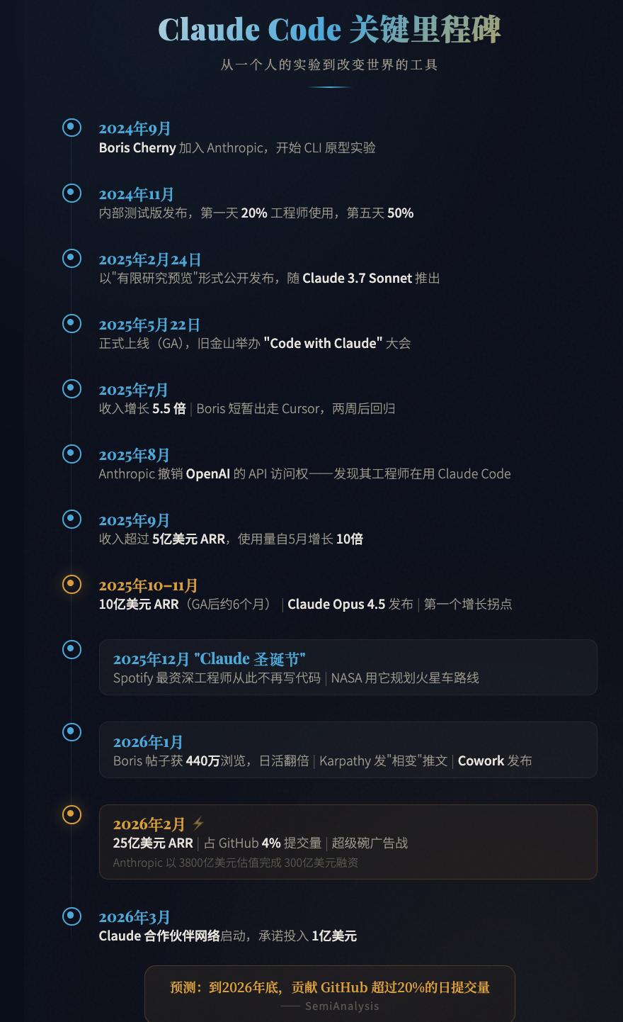 2026年2月,SemiAnalysis发布分析报告:Claude Code目前占GitHub公开提交量的4%。