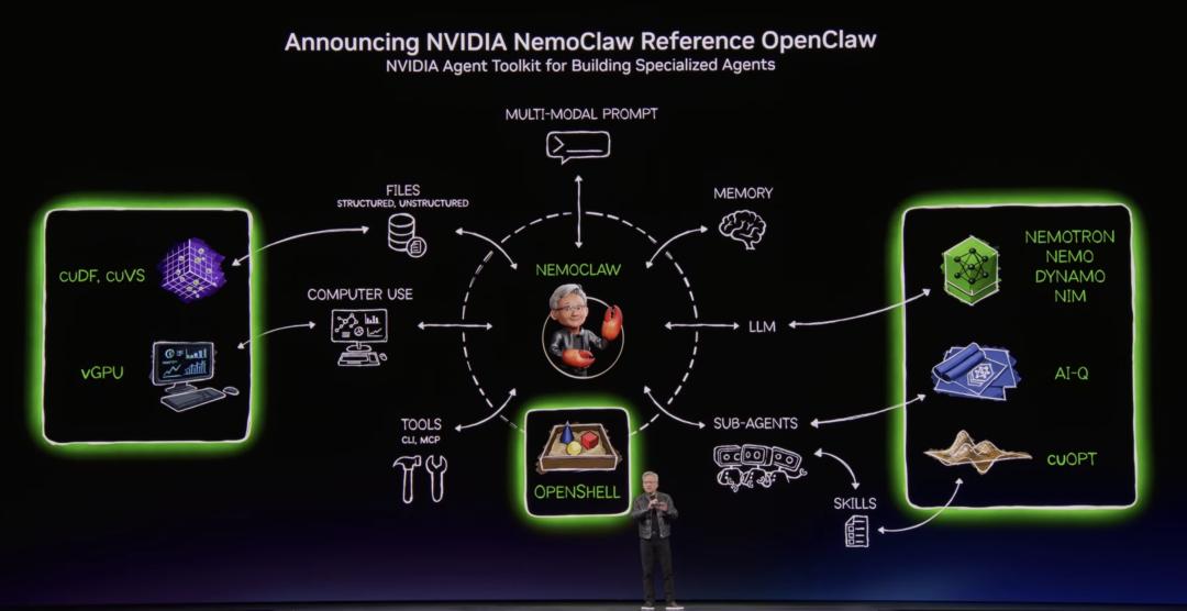 不过,老黄也指出,如果是给企业用的话,OpenClaw还不够安全,于是,英伟达和Peter合作,搞了个安全版的“龙虾”——NemoClaw。