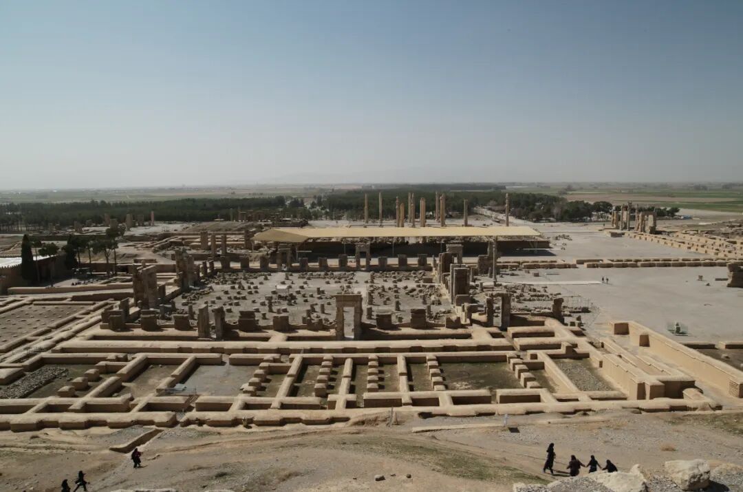 从扎博勒向西行驶数百公里,翻越克尔曼的荒漠高原,再穿过法尔斯省绿意渐生的山谷,波斯波利斯(Persepolis)出现在马尔夫达什特平原的边缘。这是旅途中最令我震撼的一刻。大流士一世于公元前518年命人在一片天然岩台上破土动工,后经薛西斯一世、阿尔塔薛西斯一世相继扩建,历时逾百年,建成了这座专为礼仪庆典而存在的神圣都城。