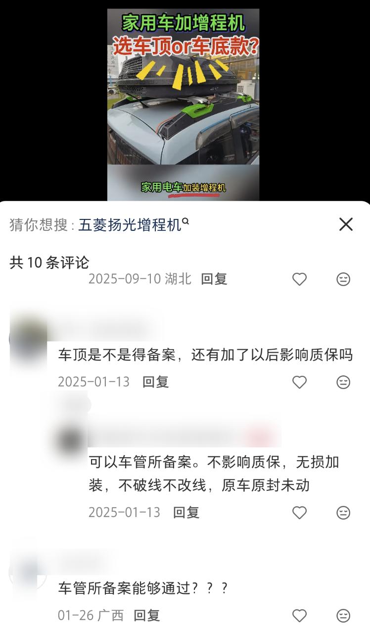 不仅如此,加装增程器需要对电气系统进行改造,车企自然不会为改装后三电系统提供质保。加装增程器,几乎等同于放弃了原厂质保服务。