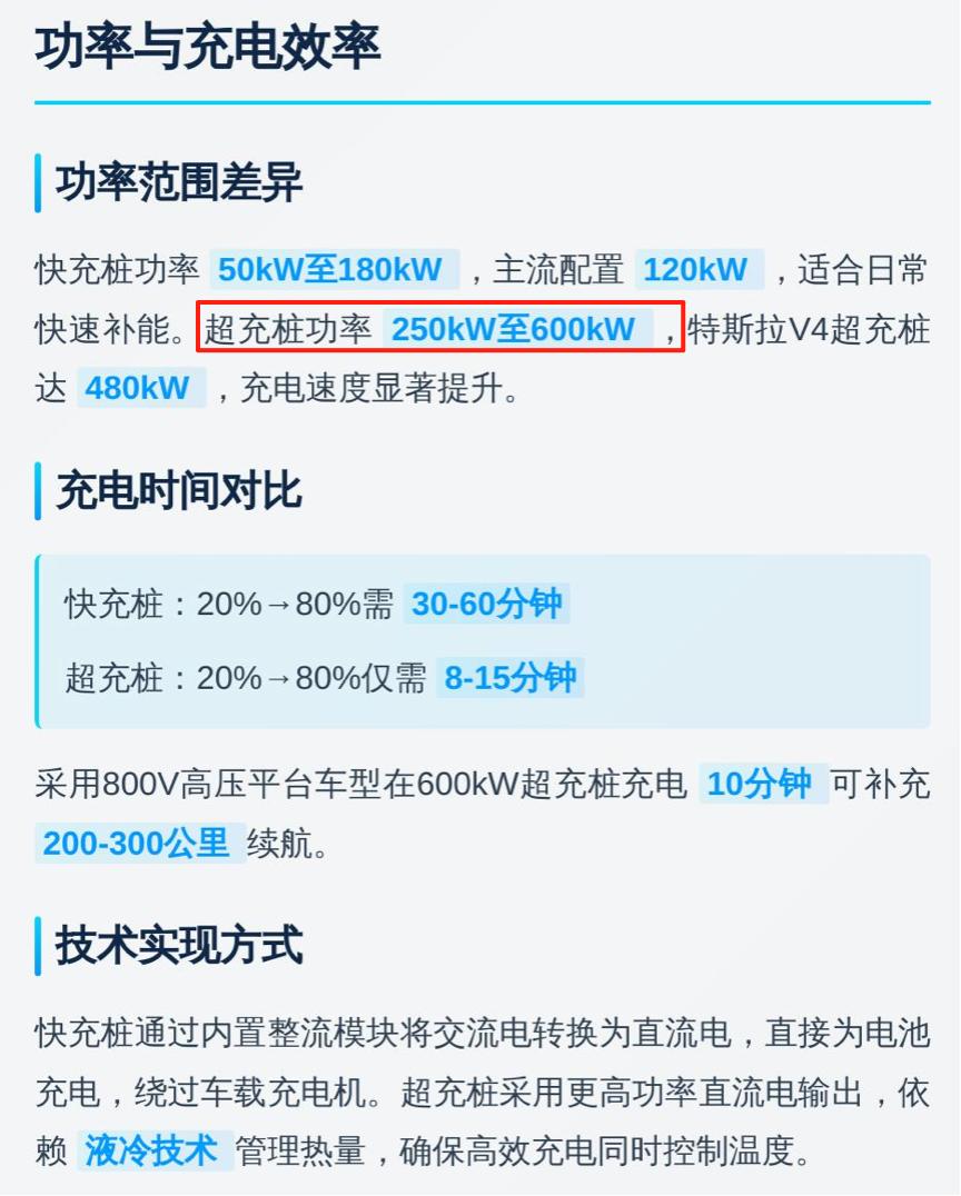 图/快充桩与超充桩区别 来源/互联网 新能源观截图