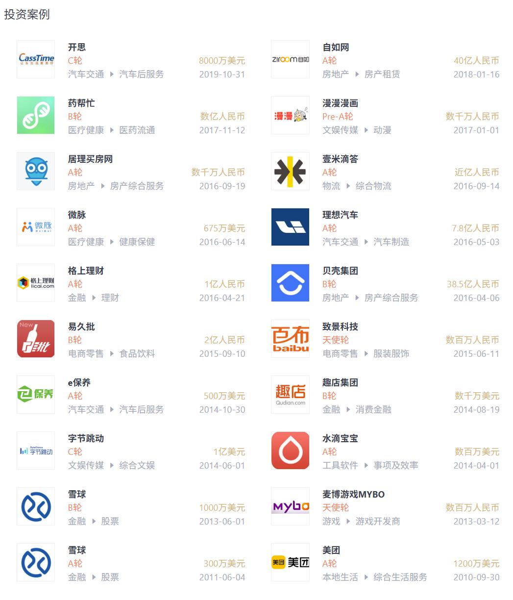 曹毅的底气或许来自他在红杉期间的投资战绩:他2010年就参与投资了美团的A轮,雪球,今日头条这几个明星项目也经他手投出。