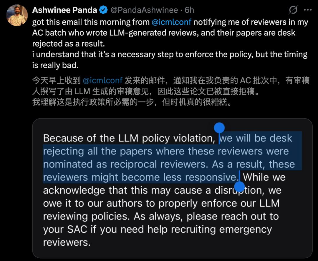 这完全是一个糟糕的决定,也不是处理AI审稿的好方法。