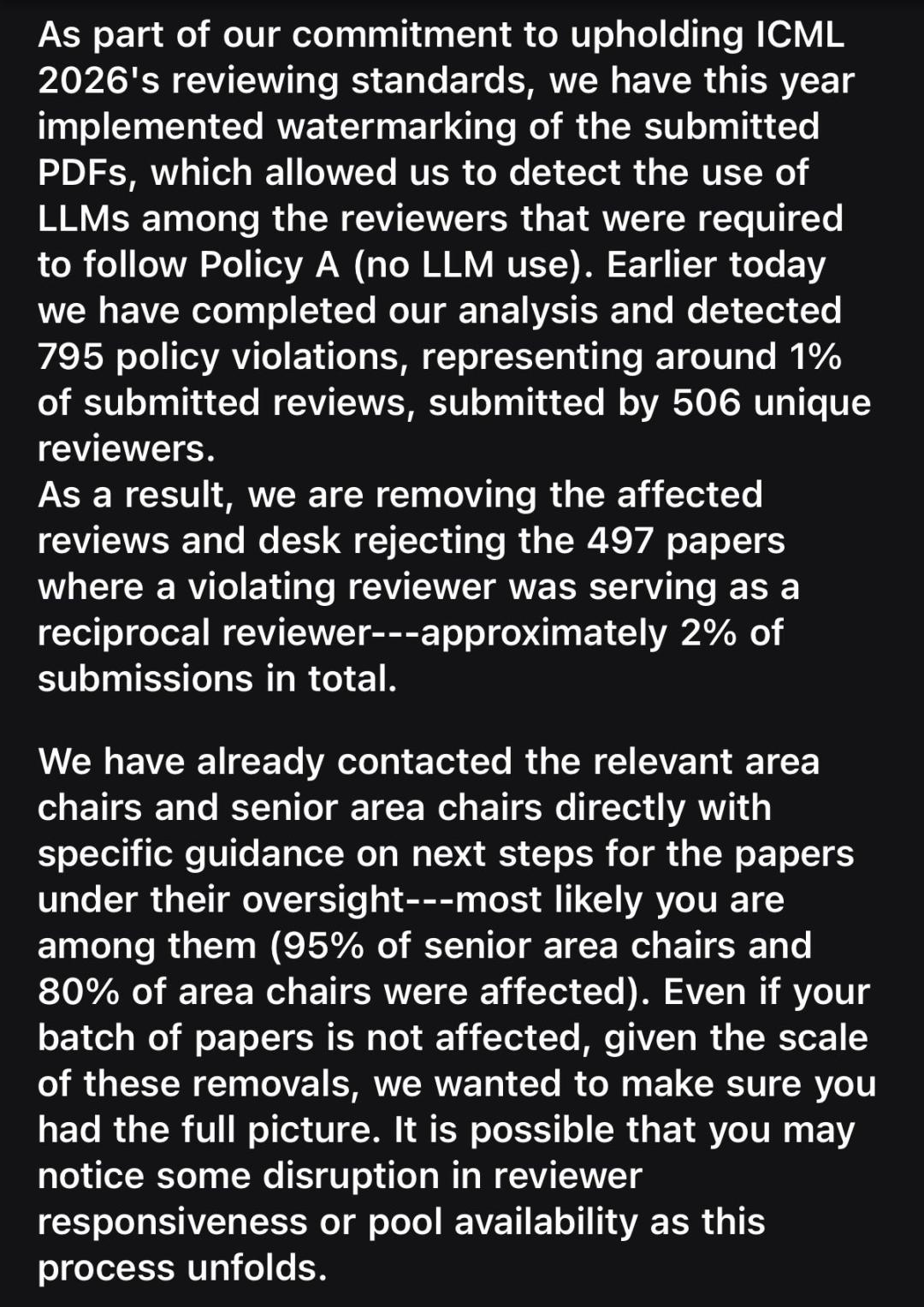这大约占到了总投稿量的 2%。同时,所有AI审稿意见全部撤销。