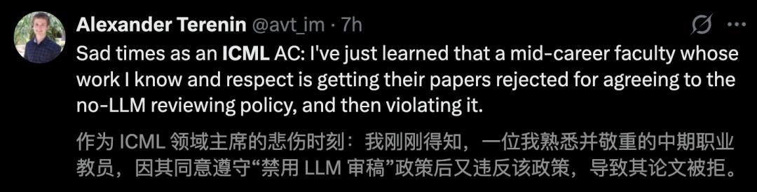 据Alexander Terenin的理解,ICML并非完全禁用LLM,只要是签署的政策,就不可违背。