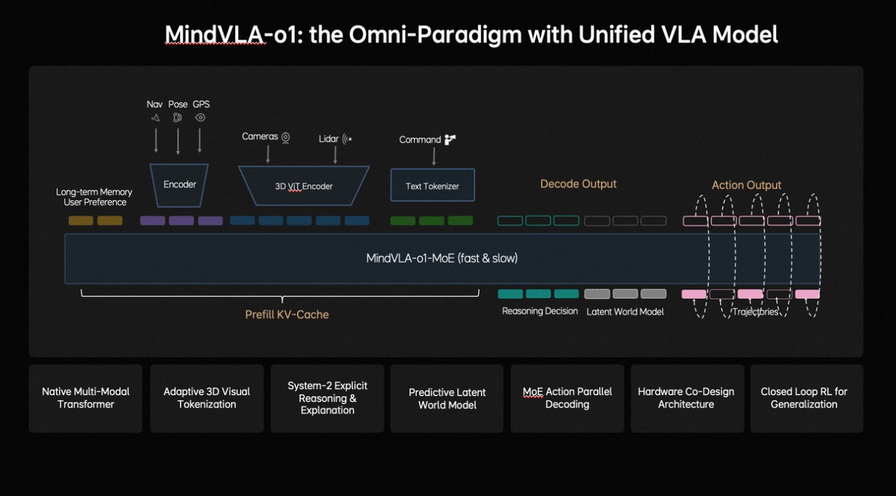 MindVLA-o1五大技术创新:看得更远、想得更深、行得更稳、进化更快、部署更高效