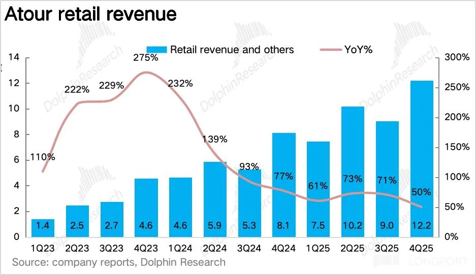 此外,对于市场更关注的高增长零售业务,展望 2026 年,从短期来看,结合调研信息,1 月亚朵抖音官方销售额达到 1.6 亿元,同比增长 67%,相较于 12 月 37% 的增速来看环比明显提速,仍让处于渗透率快速提升阶段。