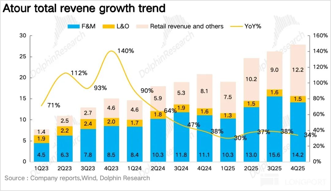 Q4 亚朵集团实现营收 27.9 亿元,同比增长 33.8%,基本符合预期。