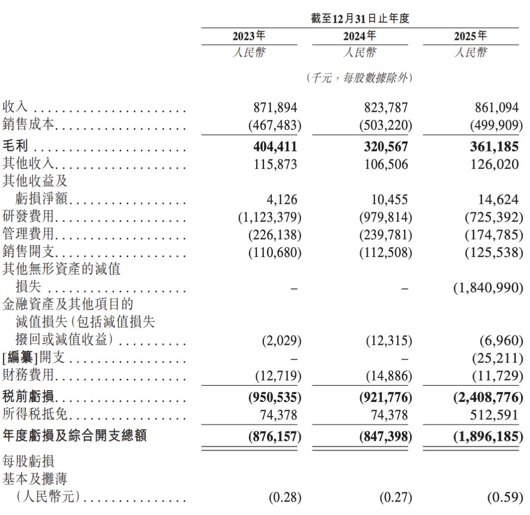 利润端更为惨淡:2023年亏损8.76亿元,2024年亏损8.47亿元,2025年亏损18.96亿元,三年累计亏损超过36亿元。