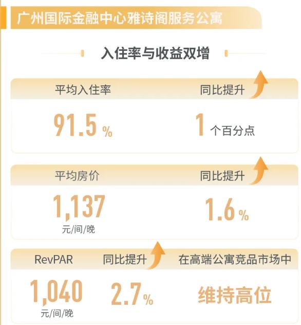而越秀正是抓住了短租公寓这一细分赛道的机遇。越秀旗下的广州IFC雅诗阁服务公寓,深耕外籍客群,优化长短租比例,全年平均入住率达到91.5%,连续十年稳居雅诗阁集团中国区第一。