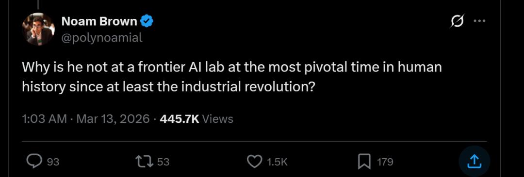 为什么在人类历史上——至少自工业革命以来最关键的时期,他(卡帕西)没有出现在一个前沿的人工智能实验室?