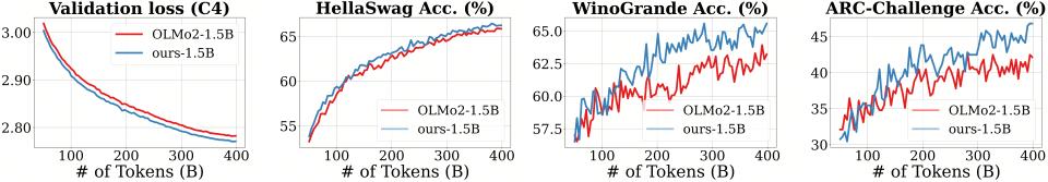 在 1.5B 参数的模型上(基于 OLMo2 的训练配方),MoDA 在 10 个下游任务上的平均性能提升了 2.11%,额外计算开销仅 3.7%。初看不大,但这是架构层面的改进,不是靠更多数据或更长训练堆出来的,会随着规模放大持续生效。而且任务之间差异很大,常识推理(WinoGrande)提升 2.37%,科学推理(ARC-Challenge)提升 4.35%,需要跨层特征整合的任务收益明显更大。
