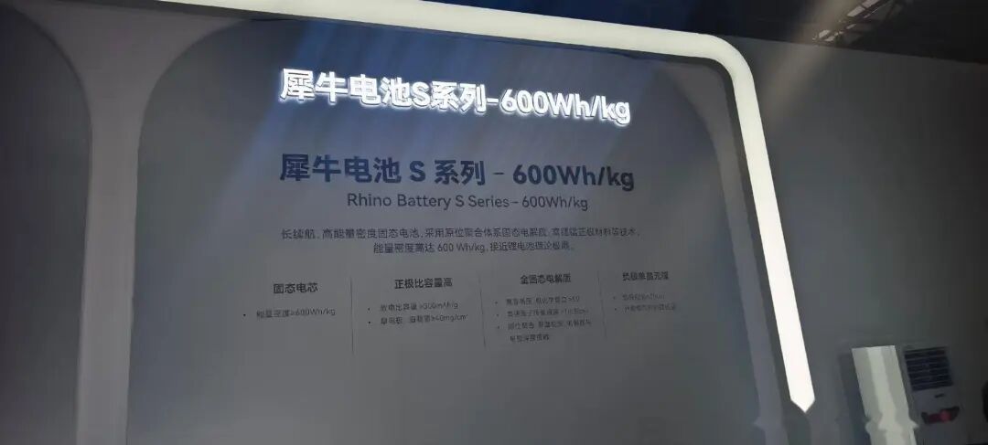 能量密度层面,现在市面上主流的高镍三元也就180Wh/kg左右,磷酸铁锂更低。奇瑞犀牛全固态电池目前给了两种方案,一种是450Wh/kg,一种是600Wh/kg。