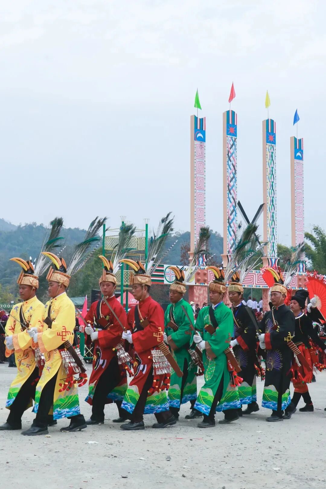 盈江目瑙纵歌节,是景颇族一年的重要盛会。人们会将犀鸟脚和孔雀羽毛带在头上。跳起最欢快的目瑙舞。很多人也会选择在这个时候,奔赴这座小城。