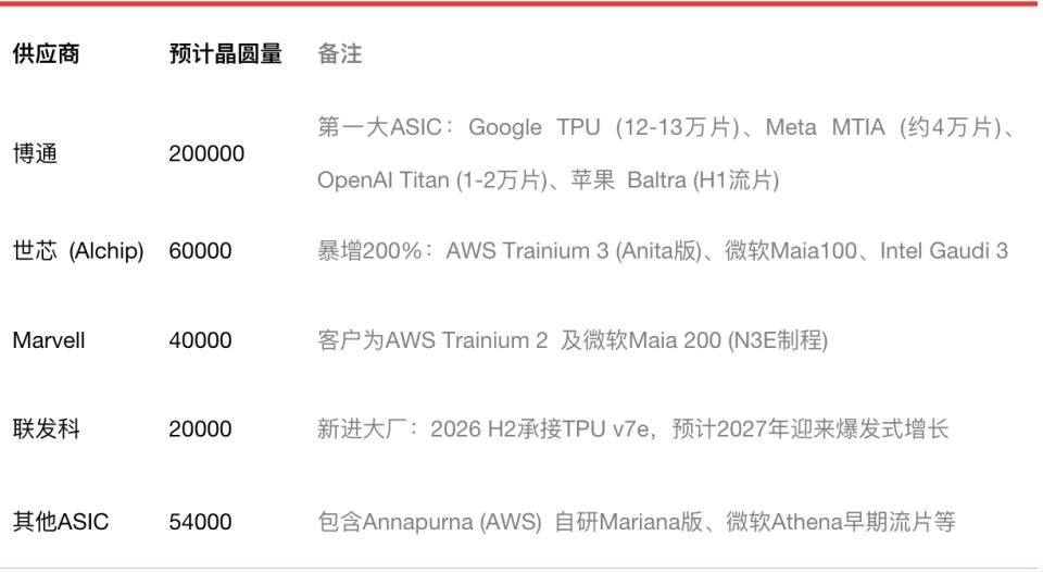 第一是博通领衔的定制芯片(ASIC)阵营。博通可以说是几乎所有大客户“叛逃”的技术后台。谷歌的TPU、Meta的MTIA、OpenAI即将推出的自研芯片Titan,背后都有博通的身影。