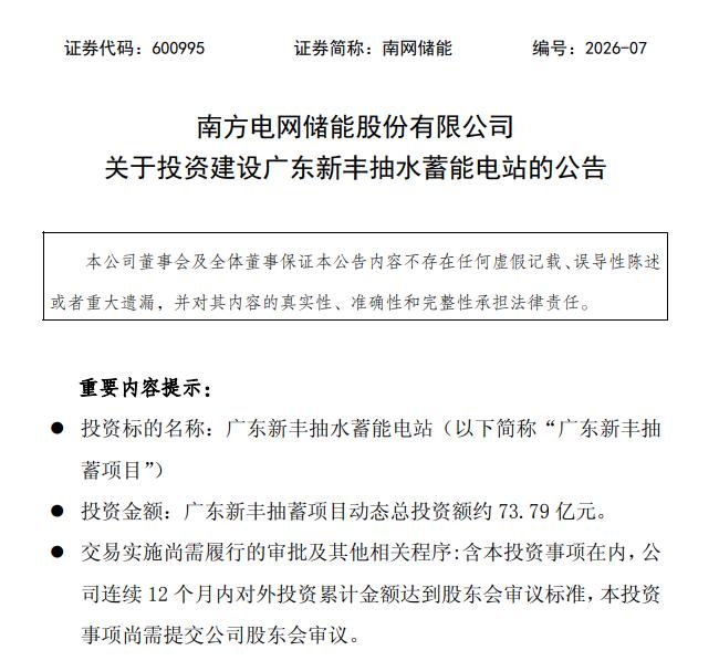 3月16日晚间,南网储能公告拟投资73.79亿元建设广东新丰抽水蓄能电站项目。120万千瓦装机,被纳入国家规划,获得省级核准,看起来是一项常规的基建投资。