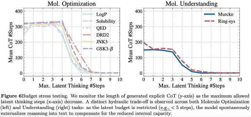 说明一旦训练目标不再明确鼓励“把推理写出来”,模型就会自然把主要计算留在内部完成。