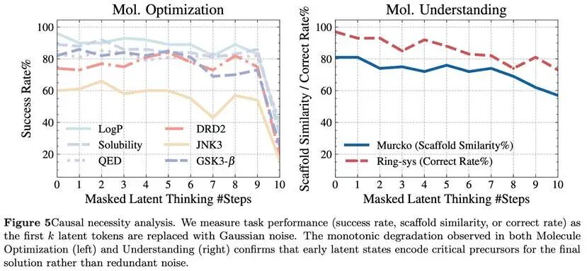 研究团队把前面若干latent steps用高斯噪声替换,然后观察模型表现。