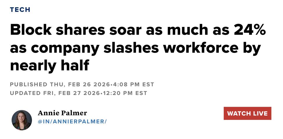 ▲Block裁员后股价暴涨24%,图源:CNBC