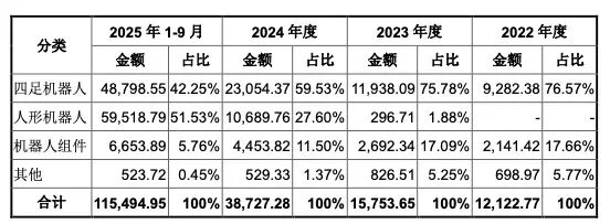 更有标志性意义的变动发生在产品结构上——人形机器人的收入已正式超越四足机器人,成为公司最大的增长极。