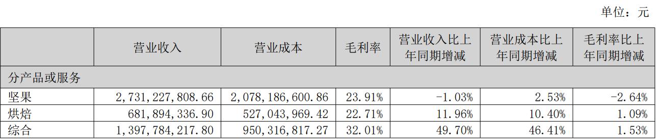 毛利率的持续承压则进一步加剧了盈利困境。受夏威夷果、碧根果等核心坚果原料采购成本上涨影响,2025 年上半年,三只松鼠核心产品 —— 坚果的毛利率同比下滑 2.64%,降至 23.91%,而这一成本压力并未得到缓解,持续贯穿至前三季度。