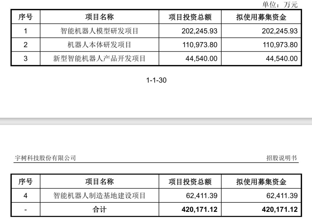 宇树科技准备发行4044.64万股,占发行后总股本的比例不低于10.00%,募资42亿元,相当于发行市值至少420亿元。募集来的钱主要用于VLA\WMA等大模型、机器人本体、新机器人产品和机器人制造基地。