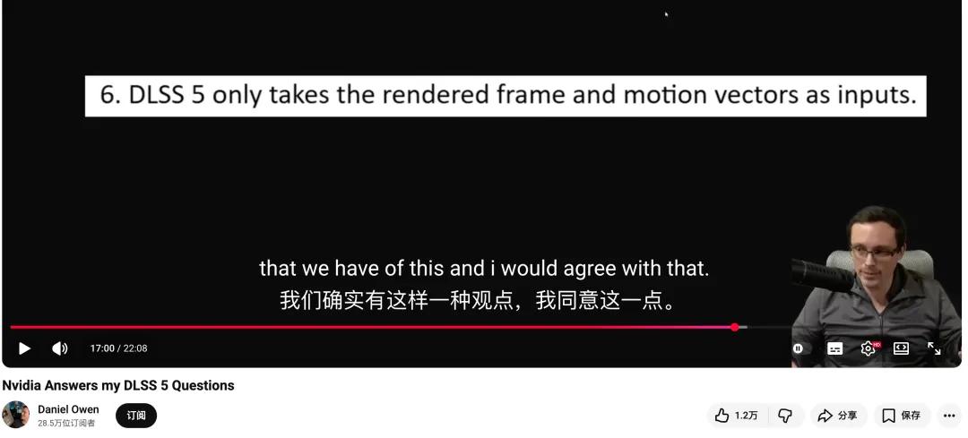 第一个问题:DLSS 5 实际上只是以单帧 2D 图像+运动矢量作为输入?