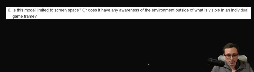 第六轮追问:DLSS 5 效果仅限屏幕空间内吗?它是否对屏幕/当前帧之外的环境场景有任何程度的感知?