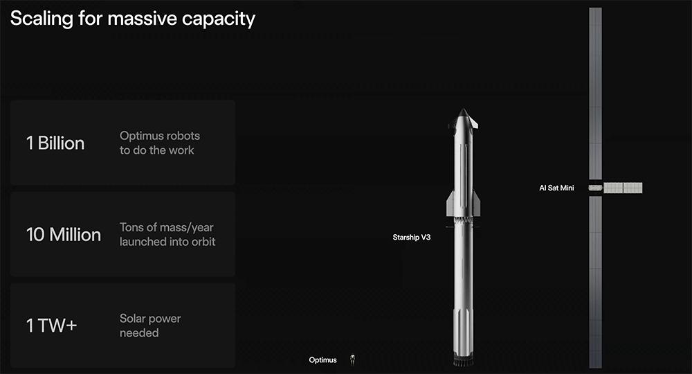 为了达到每年1万亿瓦的算力,需要每年将大约1000万吨的物质送入轨道。马斯克相信这是可行的。他们正在建设1万亿瓦级的太阳能发电设施。这就是建造Terafab的原因。