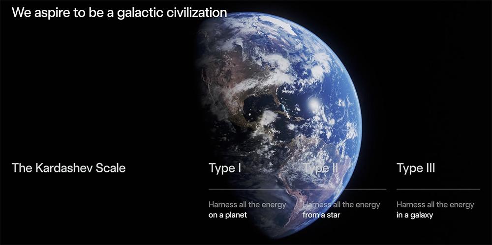 据他分享,美国的电力供应只有5000亿瓦(0.5TW),大多数人最终都必须去太空发展。