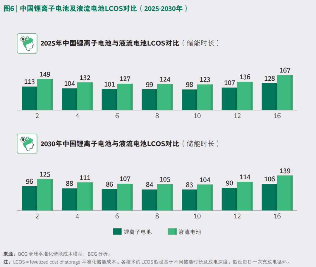 锂电子电池及液流电池LCOS对比 来源:BCG分析
