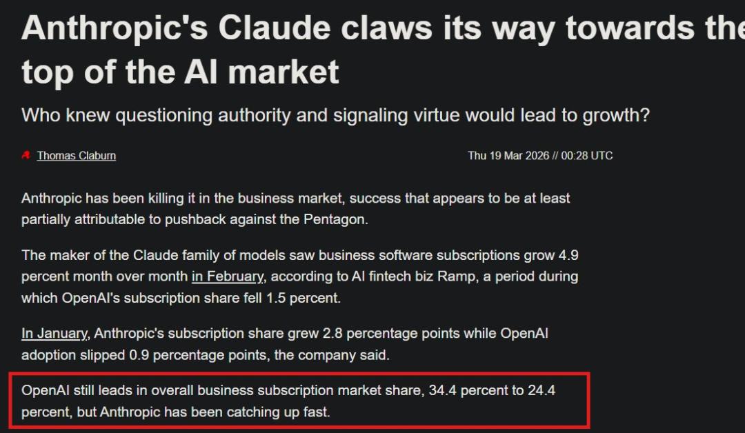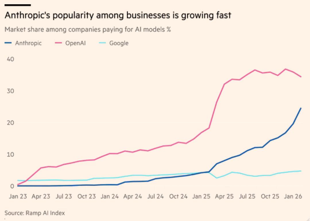 基于5万多名客户的刷卡与账单数据,支付初创公司Ramp称:首次采购AI的企业,选择Anthropic的比例是OpenAI的3倍。