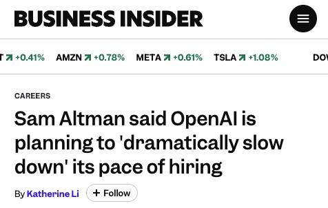 1月份,奥特曼还称OpenAI计划「大幅度放缓」招聘节奏,刚刚被爆今年打算让员工翻一番。