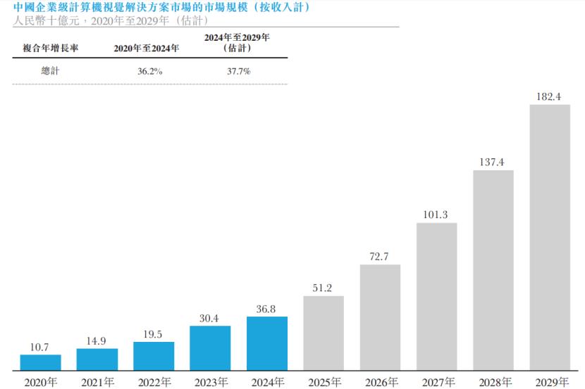 中国企业级计算机视觉解决方案市场的市场规模,来源:招股书