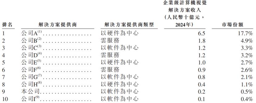 中国整体企业级计算机视觉解决方案市场的竞争格局,来源:招股书