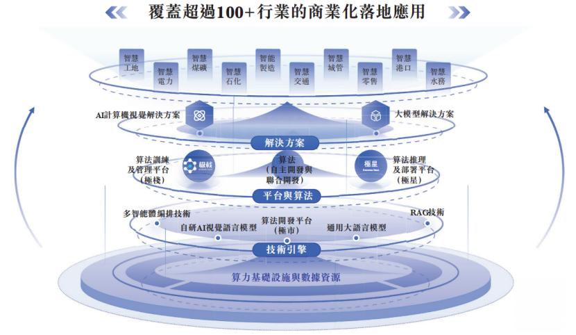 极视角解决方案的交付平台包括极星及极栈,极星是AI算法推理及部署平台,极栈是AI算法训练及管理平台。公司的AI视觉语言模型构成了开发AI解决方案的核心基础设施。