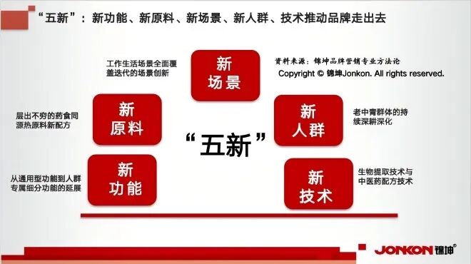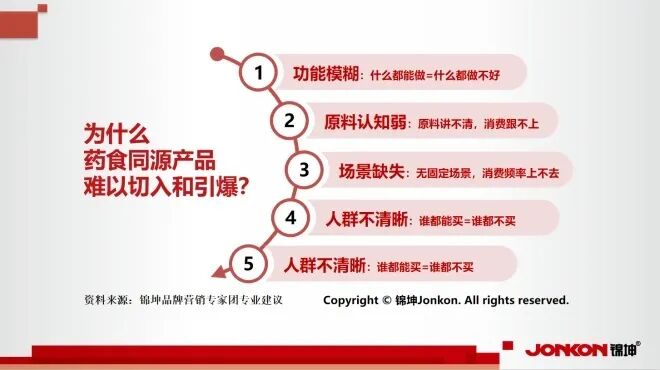 锦坤品牌专家团对全国106个药食同源的产品化、品类化、企业化、产业化和平台化进行多年的研究和实践后认为,成功的药食同源单品与品类,并非偶然爆发,而是精准踩中了新功能、新原料、新场景、新人群、新技术的关键节点。