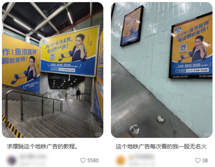 周峰透露过,每年花几个亿的投放中心,是公司最烧钱的部门。去年 5 月份开始,鱼泡直聘在成都几乎是一天投六七万个电梯,一个月要支付几百万的广告费。