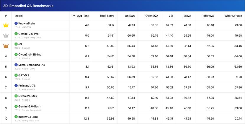 最近在具身智能评测榜单Embodied Arena中,诺因的模型KnowinBrain拿下了总榜第一。