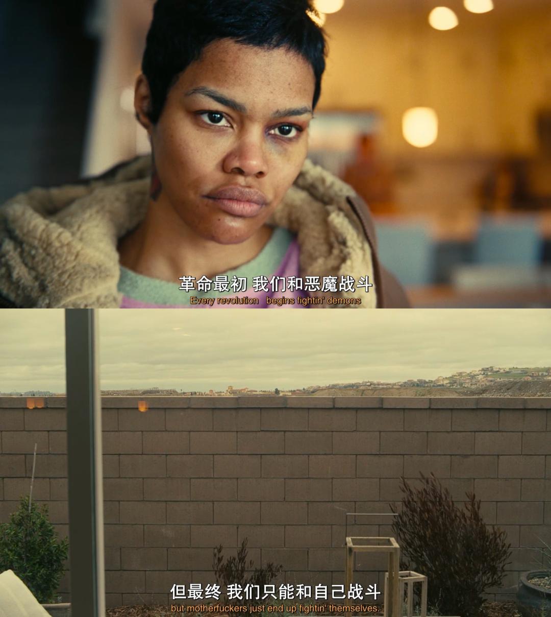 这是一部以性感的左派反叛开场,而后急转直下的电影。它讲述的不是高喊着“边境自由、身体自由、选择自由、消除恐惧”的左派获胜,也不是白人至上主义男性精英组织的右派庆典,而是一种在失控的暴力中无止境的冲突状态。