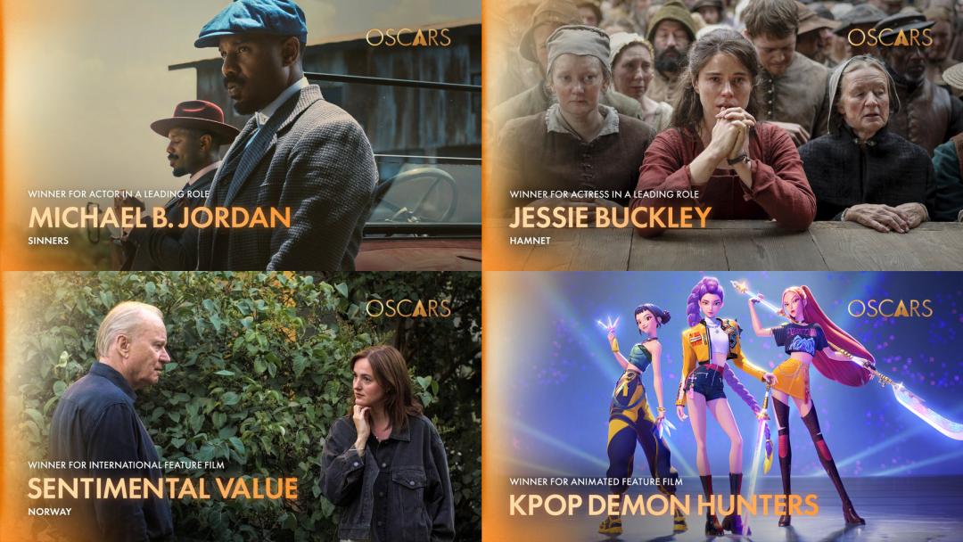 《罪人》(Sinners)将恐怖与音乐类型与美国南方历史融合,别出心裁转化吸血鬼传说为黑人种族与文化寓言,横扫原创剧本、配乐与摄影奖项,男主迈克尔·B·乔丹(Michael B. Jordan)更是摘得最佳男主角奖。