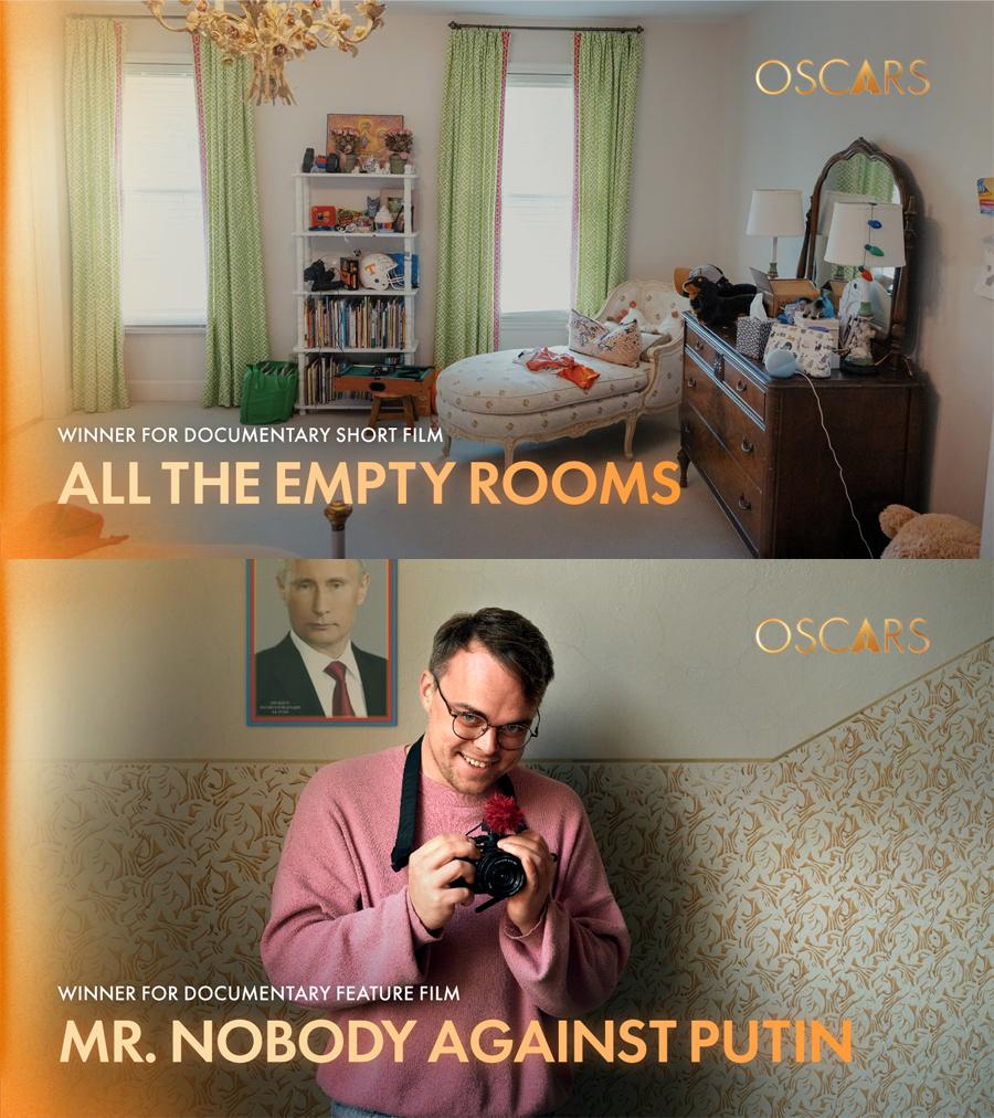 最佳纪录长片《反对普京的无名先生》(Mr. Nobody Against Putin)记录了俄乌战争爆发后,一位在俄罗斯工作的教师于充斥着政治动员与暴力的体系中工作的道德困境。最佳纪录短片《那些空寂的房间》(All the Empty Rooms)横跨全美,拍摄在校园枪击案中丧生的孩子们的卧室。