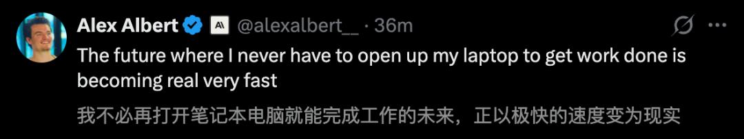 Anthropic科学家Alex Albert直言,「不用再打开电脑完成工作的未来,正加速兑现」。